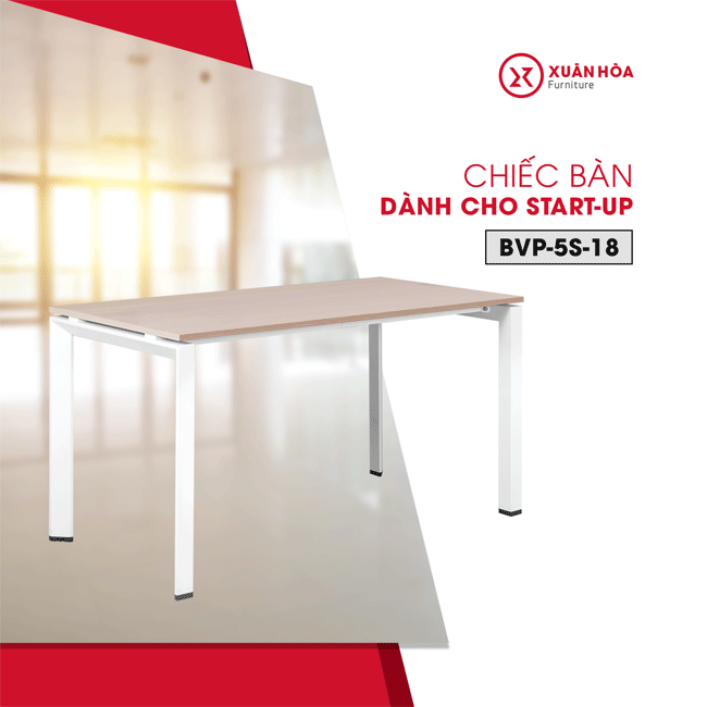 Với phong cách thiết kế tối giản và hiện đại, bàn văn phòng (BVP-5S-18) của Xuân Hoà nhắm đến những công ty start-up hoặc những doanh nghiệp có phong cách làm việc năng động và không muốn bị gò bó bởi không gian văn phòng cổ điển.
