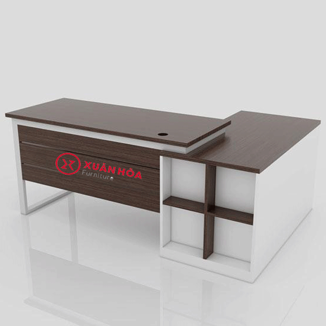 Mặt bàn chính và mặt bàn phụ có tone màu tối liền khối với hộc bàn phụ màu trắng tạo cảm giác chắc chắn, tin tưởng.